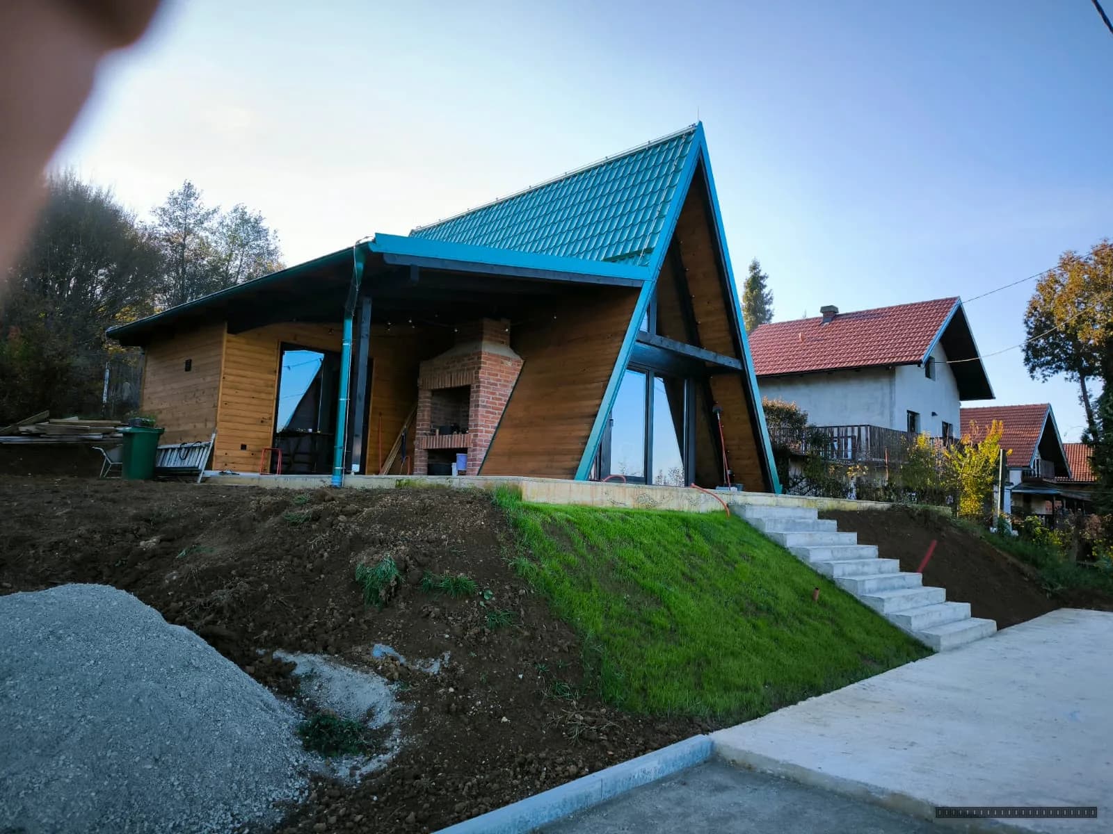 A-frame kuća izgrađena kao vikendica u šumskom okruženju Gorskog kotara. Spoj modernog dizajna i tradicionalnih materijala za maksimalan komfor i uklapanje u prirodni ambijent. Objekt uključuje veliku terasu i panoramska stakla za optimalno iskorištavanje pogleda na prirodu.