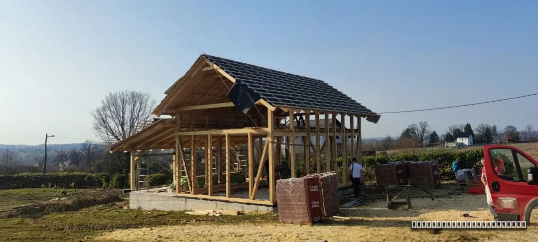 Izrada i montaža jelove drvene kuće po principu drvenog skeleta sa drvenim oblogama iz vana i unutra.